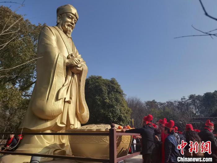 民众在沈万三像前求财运。 中新网记者钟升摄