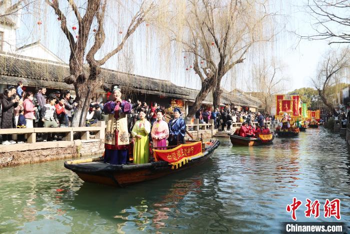 在民俗文化学者陈益看来,财神水陆巡游、民众水陆两栖迎财神是水乡的特色,既体现了沈万三利用水路出海经商发家致富的史实,也反映了江南的水文化。游客们则选择乘上江南传统的手摇船,跟着财神巡游船队穿行于水上财道,顺带“打卡”南湖秋月、双桥等周庄的水上景点,两全其美。